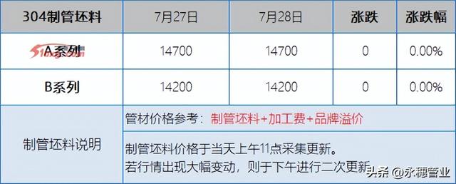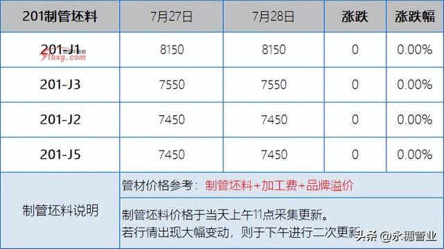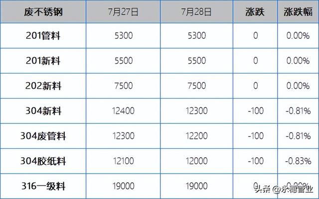 較昨日早間,今日早間市場201報價持平;304報價部分持平,部分跌100元/噸,目前主流報價區間:201在5400-5500元/噸;304新料12200-12300元/噸。