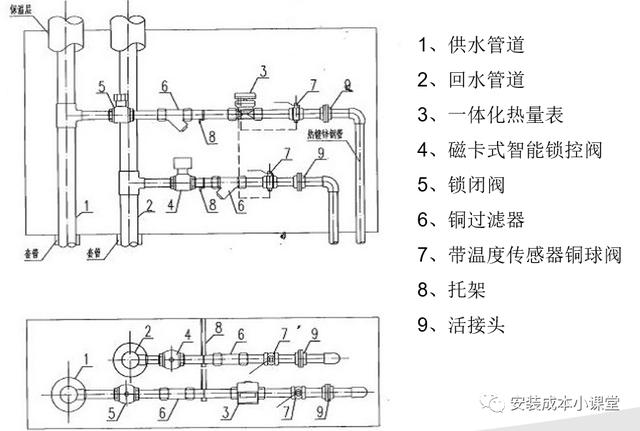 樓內(nèi)采暖立管主要包括管道(多為鍍鋅鋼管)、保溫、鎖閉閥、過(guò)濾器、測(cè)溫球閥、熱計(jì)量表等附件。采暖立管造價(jià)一般25-30元/建筑面積(不含熱計(jì)量表),熱計(jì)量表按戶數(shù)單獨(dú)計(jì)算。