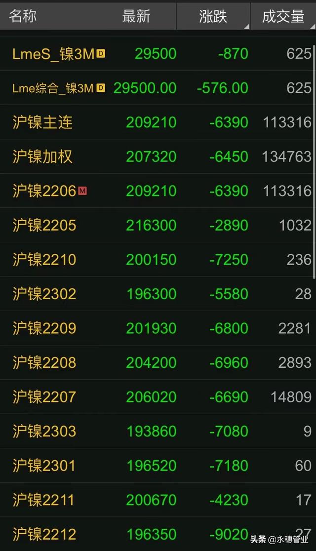 倫鎳最高下跌800多美元,滬鎳最高下跌9000多元