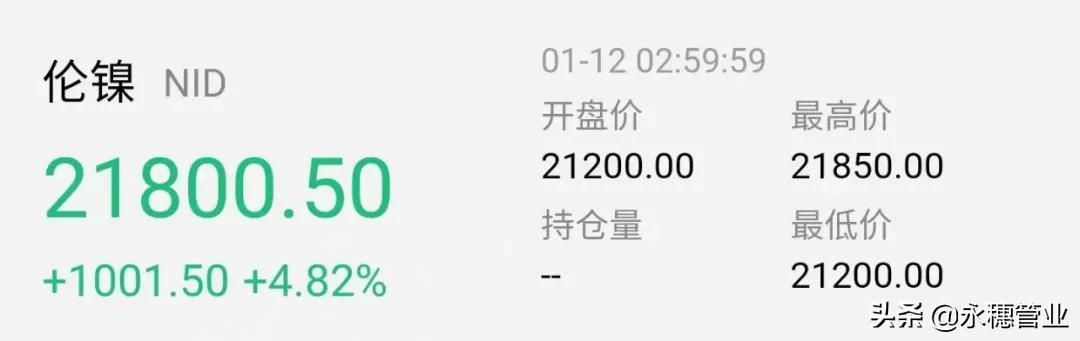 倫鎳當前下跌200多美元;滬鎳早間上漲午后震蕩