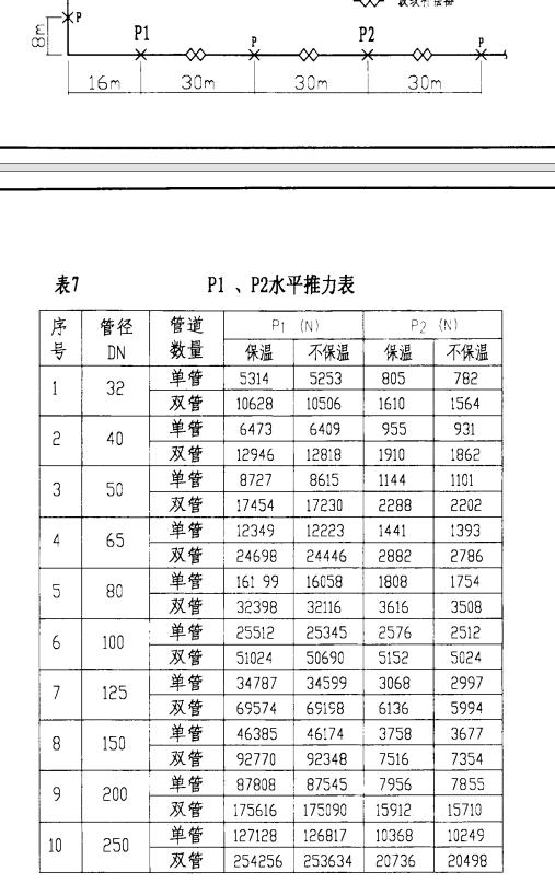 從上圖可知,雙管DN250,P1支架時,水平推力254256N。