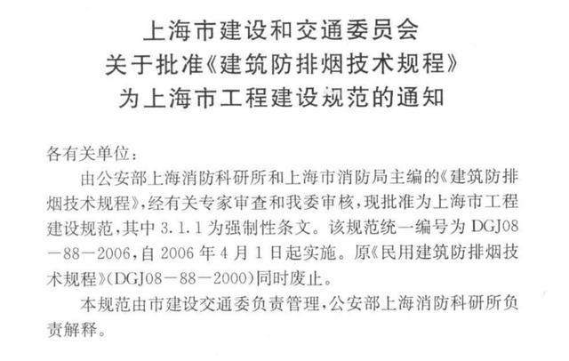 注:現在的國標防排煙規范,基本上就是脫胎于上海地區的地方規范(2000年第一版)。