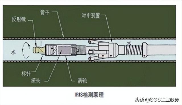 在用換熱器管束的腐蝕檢測,目前內旋轉超聲檢測(IRIS)是在役熱交換管檢測方法中最為便利有效的檢測手段之一,它不僅能夠快速檢查出熱交換管存在的問題,還可以通過內表面回波與外表面回波的時間差和波幅計算出 管子的內徑、外徑和壁厚。